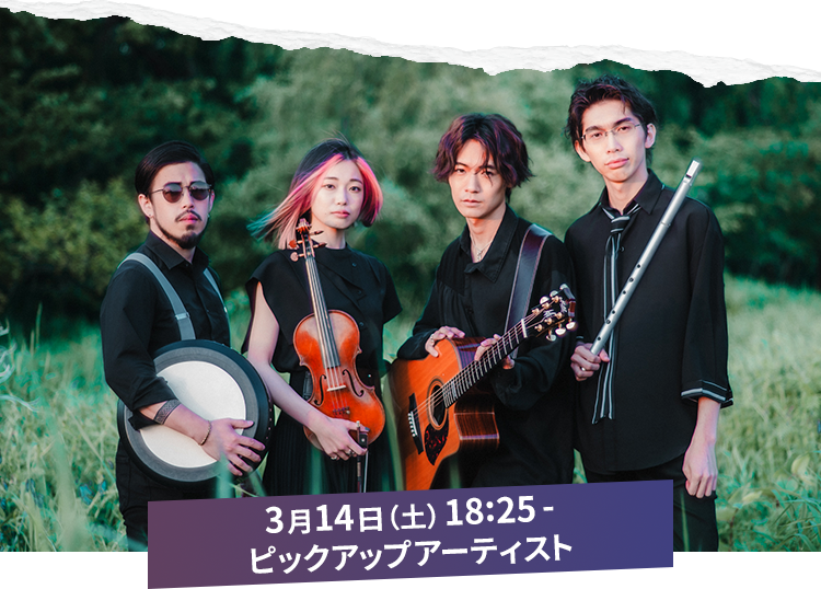 ボーカル&フィドル:TOA ボーカル&アコーディオン:寺田侑加 ボーカル&ハープ:木村林太郎 コントラバス:Jason Scott ゲスト/フィドル&ボーカル:権藤英美里